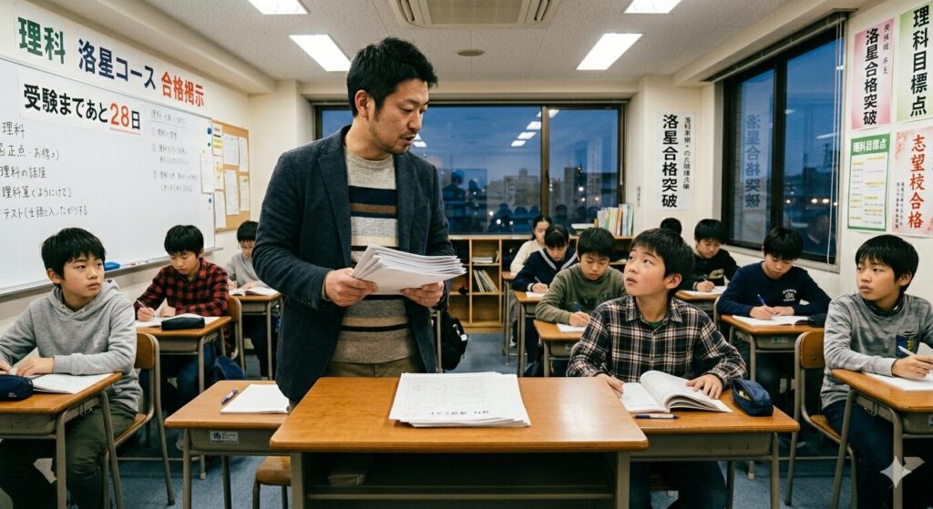 6年生の夏のことです。私は普段はSクラス(真ん中のクラス)だったのですが、夏期講習では灘・洛南コースという、私の教室の中では最難関のクラスの授業を申し込んで受講していました。